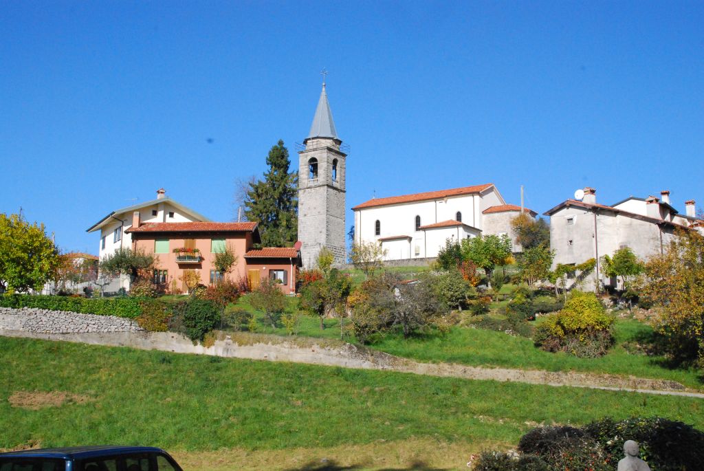 Bila je sobota, praznik Marijinega rojstva oziroma mali šmaren in Terezija je v dolini, kjer danes stoji kapela prikazanja, pasla kravo. Ko je želela požeti nekaj trave za živino, je zaslišala glas, ki ji je v beneški slovenščini pravil: »Hčerka, kaj delaš tukaj?« Deklica je vsa začudena odgovorila: »Žanjem travo.« Nakar ji je bleščeče oblečena gospa povedala: »Ne veš, da je danes praznik, da Bog prepoveduje delati na praznik in je to greh? Daj srp meni, da ti bom pomagala.«