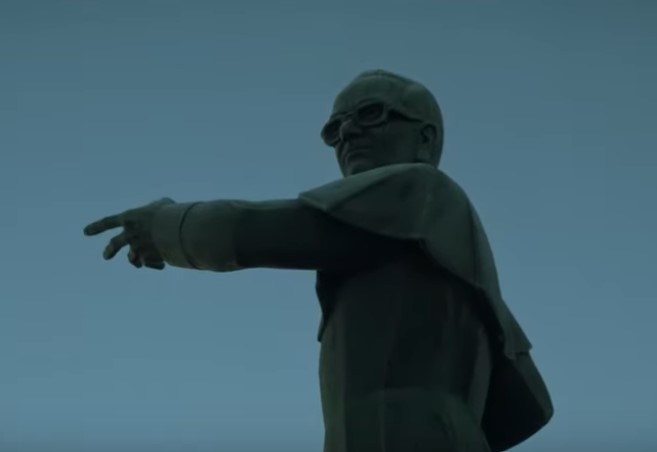 Lojze Kozar, spomenik pred cerkvijo v Odrancih foto: prizor iz filma Domov