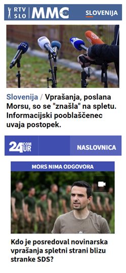 Tudi poročanje o sami zgodbi glavnih medijskih hiš daje vtis usklajenosti (vir: zajem zaslona MMC in 24 ur)
