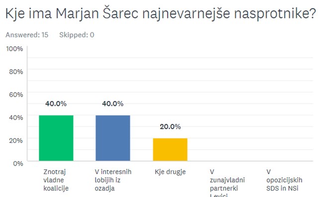Sodelujoči poznavalci politike sicer večinoma menijo, da ima premier najnevarnejše nasprotnike znotraj vladne koalicije in v interesnih lobijih iz ozadja. Prav nihče jih ne vidi v Levici ali opozicijskih SDS in NSi.