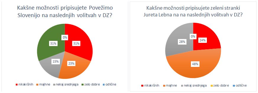 In možnosti po oceni sodelujočih poznavalcev politike? Trije menijo, da Lebnova zelena stranka na naslednjih parlamentarnih volitvah nima nikakršnih možnosti. Največ, šest, jih meni, da so njene možnosti majhne. Pet sodelujočih ocenjuje, da so nekaj srednjega, nihče pa ji ne pripisuje zelo dobrih ali odličnih možnosti za preboj v prvo politično ligo.