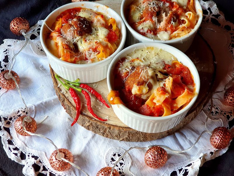 Advent je tu in spet je napočil čarobni čas za veselo druženje, ob katerem je zaželeno tudi kaj dobrega pojesti. Zato bom decembra predstavila nekaj jedi, ki jih lahko pripravite kot običajno jed ali pa z malce čarobnosti tudi za svečanejše priložnosti. Tokrat predstavljam testeninsko-mesno jed, ki je lahko glavni obrok ali predjed.