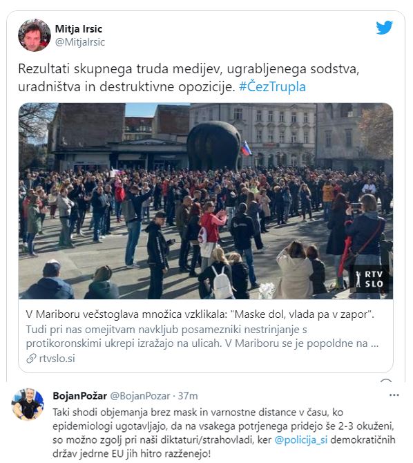 Oba sta govorila enako kot protestniki v Mariboru, kar sicer lahko neprestano poslušamo tudi na levih družbenih omrežjih in medijih.