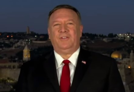 Državni sekretar Mike Pompeo se je javil iz Jeruzalema in volivce spomnil na zunanjepolitične dosežke tega mandata, posebej je poudaril prizadevanja na Bližnjem vzhodu. Vir slike: Youtube
