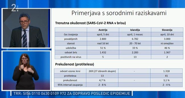 Slovenska raziskava je med prvimi tovrstnimi v svetu in edina, ki je istočasno ugotavljala aktivne in premagane okužbe.