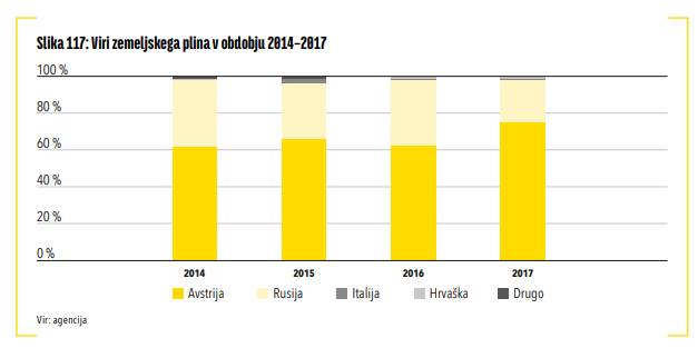 V Sloveniji 11% vseh energetskih potreb zadovoljimo z zemeljskim plinom, ki ga po podatkih Agencije RS za energijo uvažamo predvsem iz Avstrije. Pri tem podatku velja opozoriti, da je do velike spremembe prišlo leta 2015 z liberalizacijo trga. Zaradi liberalizacije trga je uvoz zemeljskega plina iz Rusije upadel, povečal pa se je uvoz plina iz Avstrije. V štiriletnem opazovanem obdobju je bil ta večji od 60 %, v letu 2017 pa se je zvišal na 75 %. V letu 2014 smo iz Rusije uvozili 60% zemeljskega plina, leta 2017 pa manj kot 25%.