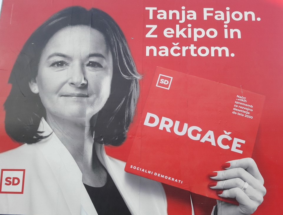 Tanja Fajon v barvah stranke SD z geslom »Drugače« ter sporočilom, da ima ekipo in načrt volivcem kaže povolilni načrt velikih sprememb za Slovenijo do leta 2030, ki obljublja spremembe ter nov začetek.