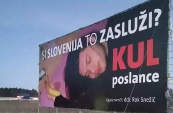 Milo rečeno provokativen plakat izpod rok (in žepa) kontroverznega podjetnika Roka Snežiča s fotografijo, kakršno smo na majici in kapi naročnika oglasa videli že v državnem zboru, namiguje na neprimernost dotičnega poslanca za funkcijo, ki jo opravlja. Sporočilo posploši na vse poslance koalicije, v katero se povezale stranke leve opozicije.