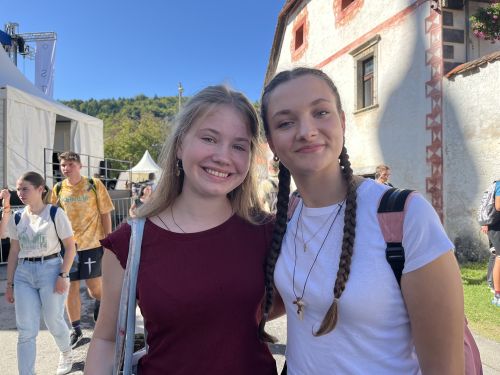 Lena in Ana: »V Stično sva prišli, da bi srečali prijatelje, ki jih že dolgo nisva videli. Geslo 'Poglej gor' nama sporoča, da se moramo prepustiti, da nas Bog vodi, in se zavedati, da nikoli nismo sami.«