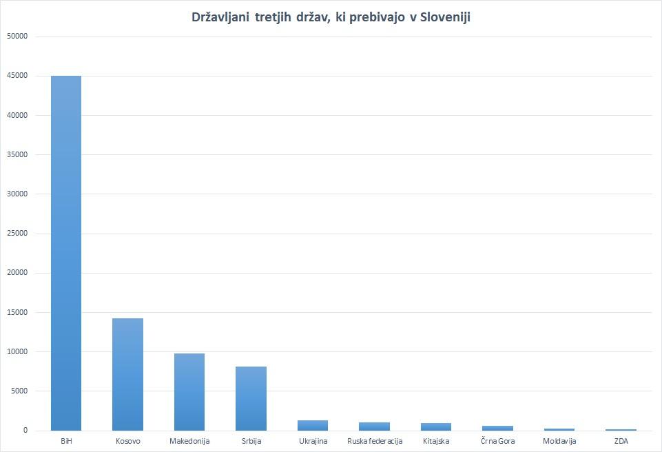 Graf je iz konca 2018, sedaj se je število tujcev v Sloveniji še nekoliko povečalo ...