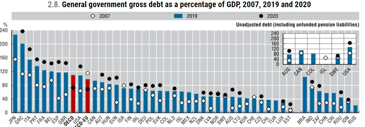 Ter dodajajo: "Preliminarna ocena kaže, da bo v letu 2021 realiziranih za 14,3 milijarde evrov odhodkov. To je za 850 milijonov več, kot je bilo predvideno v proračunu, sprejetem konec leta 2020. Povečanje izhaja predvsem iz višjih izdatkov, vezanih na ukrepe za blažitev posledic epidemije. Slovenija je za te ukrepe namenila 2,8 milijarde evrov ali 5,6 % BDP".