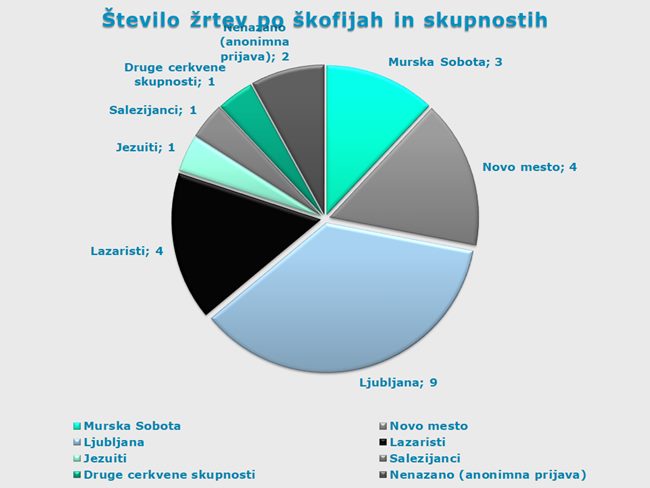 Naznanilo jih je skupaj 25 žrtev, od tega 14 moških in 11 žensk. Petnajst žrtev je bilo v času spolne zlorabe starih do 15 let, deset žrtev med 15 in 25 leti. V iniciativi Dovolj.je so, skupaj z žrtvami, do sedaj podali 7 kazenskih ovadb zoper duhovnike.
