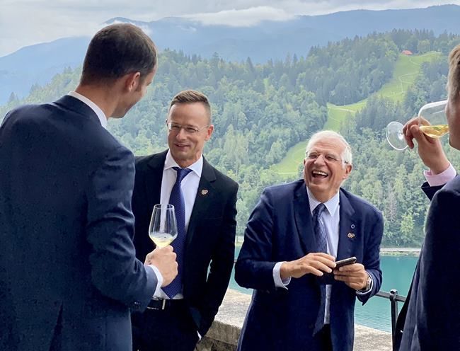 Po formalni razpravi zunanjih ministrov na @BledStratForum še neformalno z ministri. @TPetricek @RauZbigniew @JosepBorrellF @grlicradman @IvanKorcok and Péter Szijjártó, thank you for your participation at the event! pic.twitter.com/HmUIHOpdXn