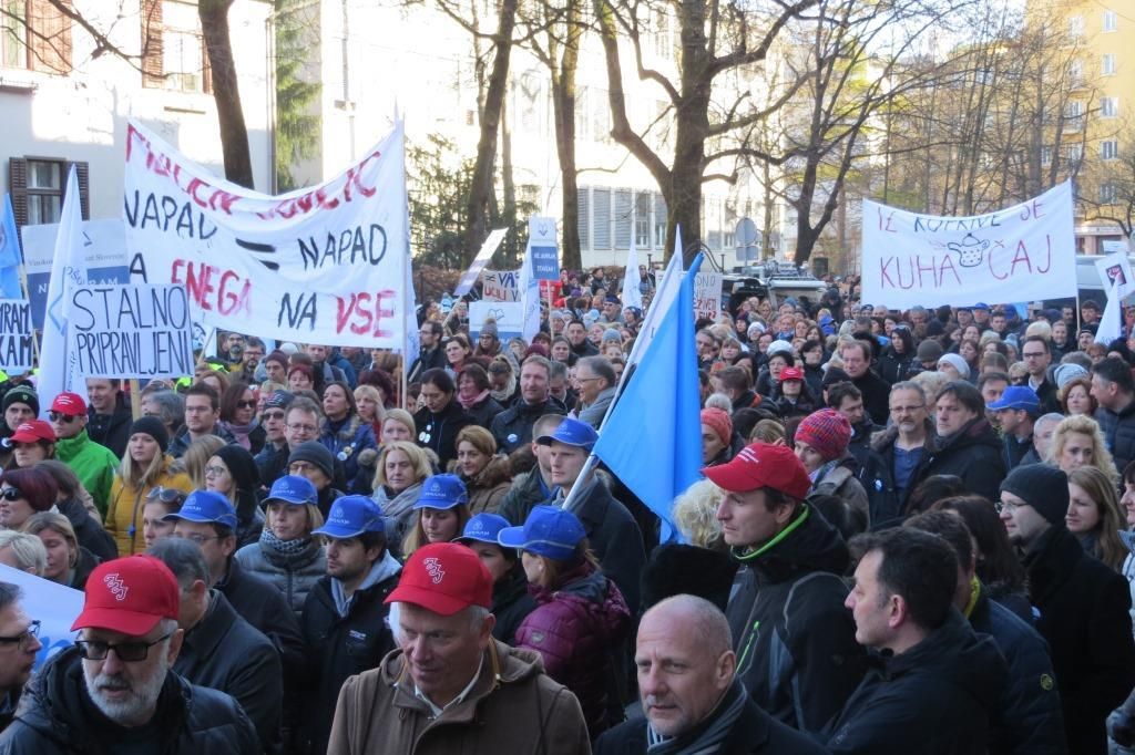 Še nekaj drugih sindikatov (npr. sindikat poklicnega gasilstva in sindikat plačne skupine J) pa se je gornjim pridružilo na osrednjem protestu pred vladno palačo ob simbolični uri pet čez dvanajsto. Po besedah Jakoba Počivavška je stavkalo okoli 30 tisoč javnih uslužbencev, od katerih se jih je nekaj tisoč zbralo na protestnem shodu. Nanj so v skupinah odšli izpred UKC Ljubljana, Univerze in Doma sindikatov.
