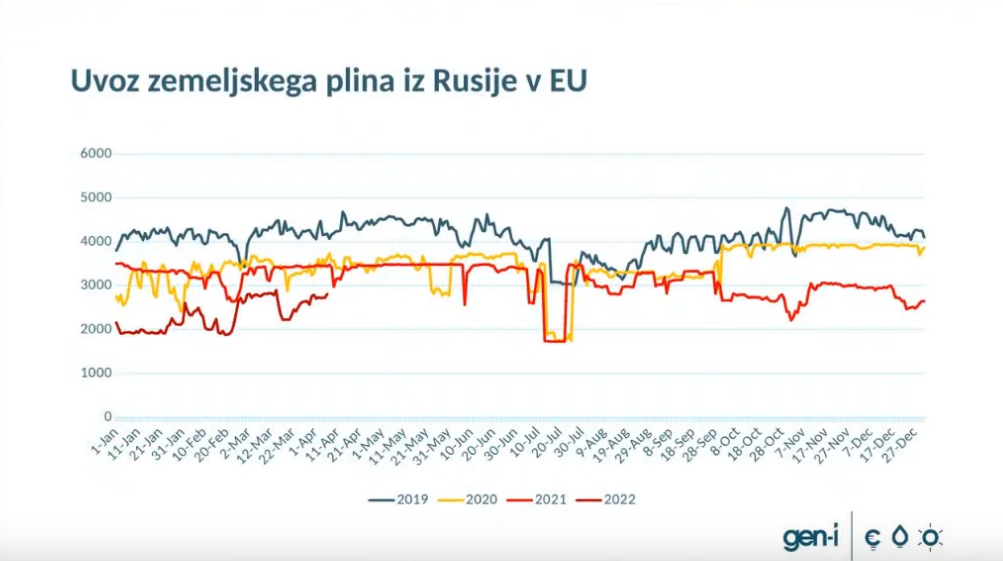 Kot smo lahko slišali v razpravi, je tudi Slovenija pri uvozu zemeljskega plina močno odvisna od Rusije. Povišanje njegovih cen pa se zaradi njegove zamenljivosti (sovisnosti) pozna tudi na cenah vseh preostalih energentov.
