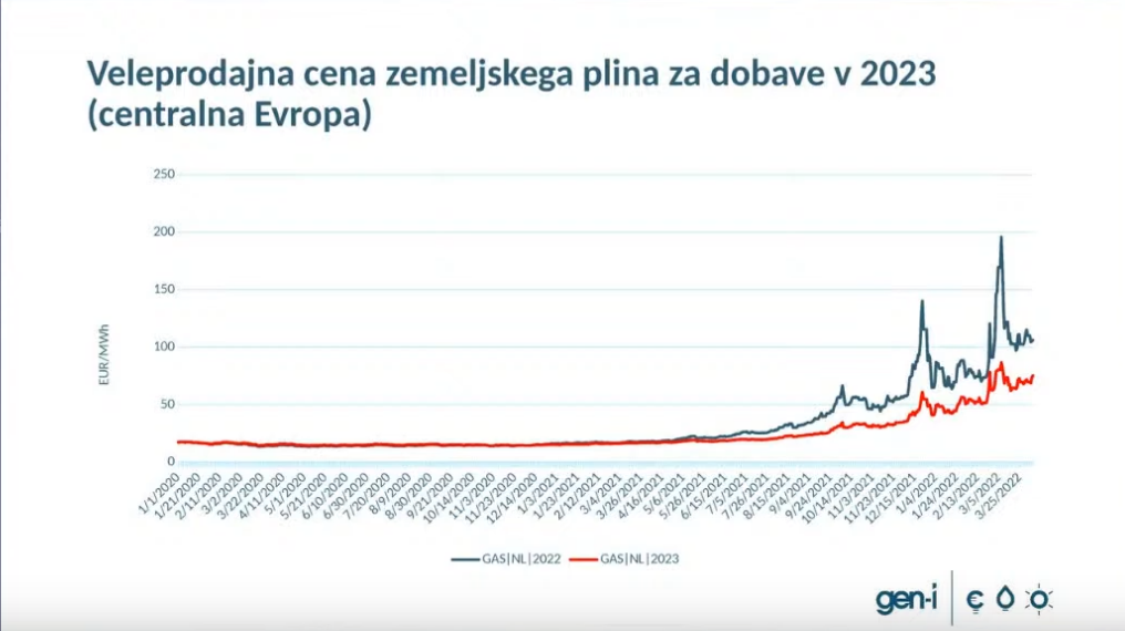 Cene zemeljskega plina bodo ostale visoke tudi v letu 2023. Vir: GEN-I (zajem zaslona)