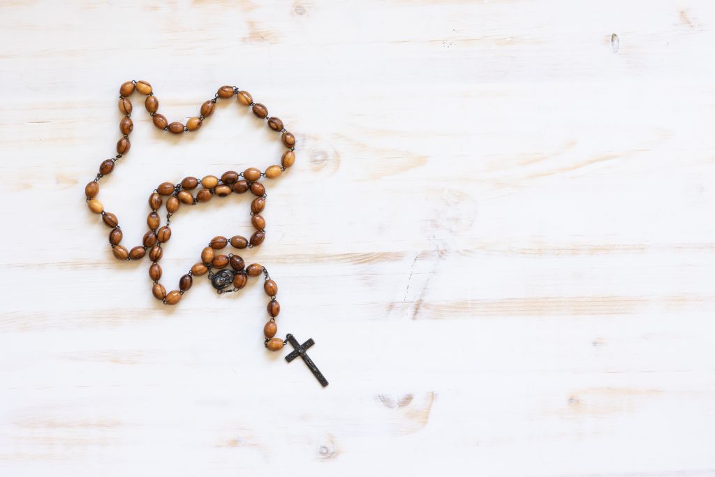 Atributa svete Bernardke sta rožni venec in pastirska obleka.