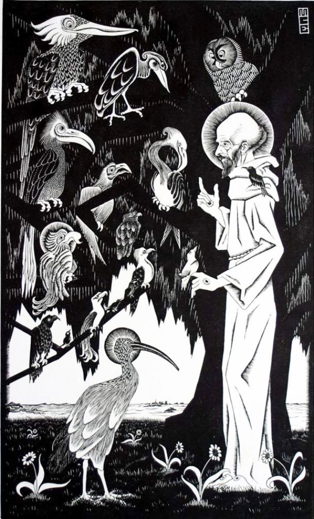 Sveti Frančišek pridiga pticam – M. C. Echer