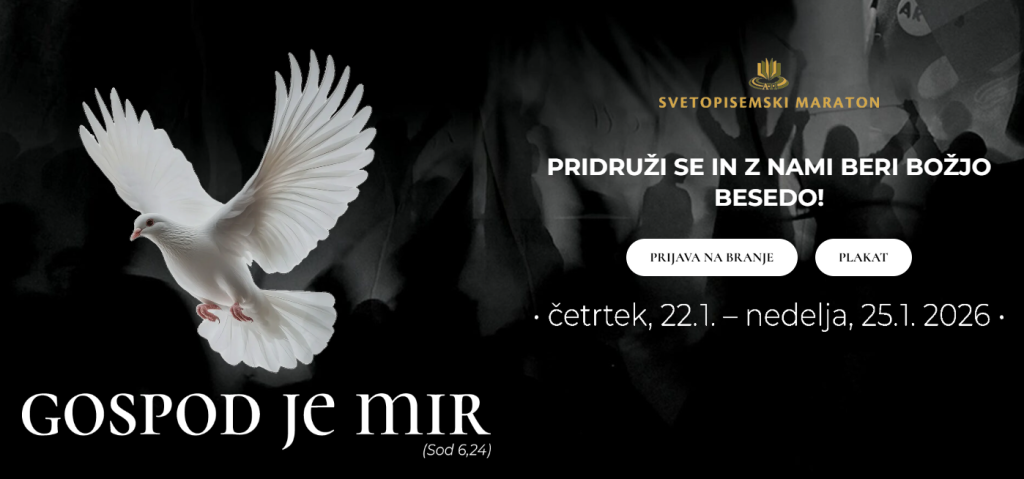 Od četrtka, 22. januarja, do nedelje, 25. januarja 2026, bo v Sloveniji spet Svetopisemski maraton, s katerim kristjani pritrjujemo temu, da vse Božje delovanje razumemo kot utelešenje Božje Besede. Svetopisemski maraton je neprekinjeno branje Svetega pisma, torej noč in dan, vse štiri dni. Nikakor ne gre za tekmovanje v hitrem branju, ampak je prebiranje hkrati molitev za bralca in poslušalce.