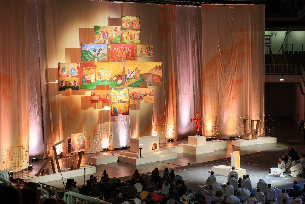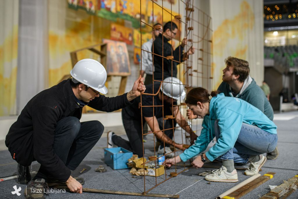 V dvorani Stožice je medtem potekala priprava na večerno taizejsko molitev. V vsakem mestu je okrasitev dvorane hkrati podobna, a z unikatnim pridihom lokalnega okolja, kjer poteka srečanje.