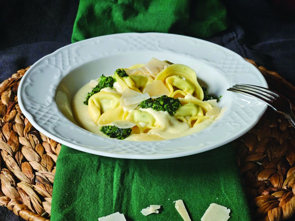 Tortelini s parmezanovo kremo in špinačo
