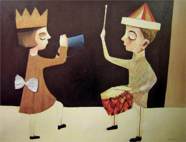 Nejevoljen je deček prepustil boben deklici in poprijel za trobento.