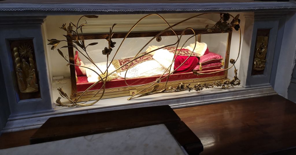 Na tem trgu smo dobili svetoletni križ in v procesiji smo se odpravili po znameniti promenadi proti Vatikanu in baziliki svetega Petra. Prestopili smo sveta vrata in lahko občudovali Michelangelov kip Pietà in molili na grobovih svetih papežev Janeza XXIII. in Janeza Pavla II. Nestrohnjeno truplo papeža Janeza XXIII. leži v krsti s steklom.