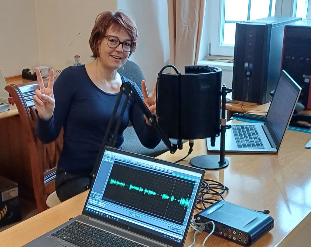 Dr. Nataša Terbovšek Coklin med snemanjem. Foto: Sebastjan Žvipelj