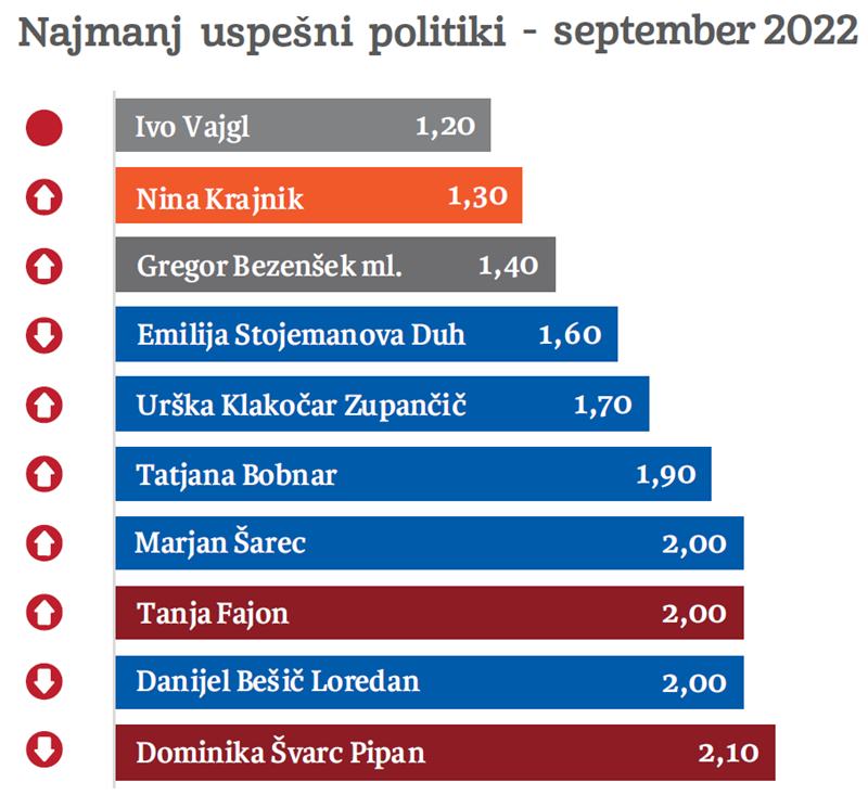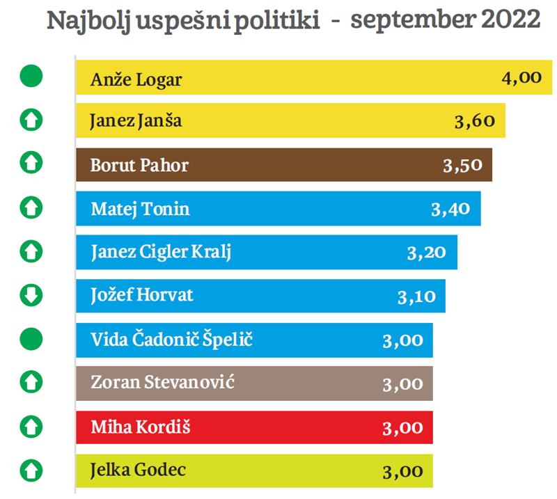 Medtem ko je Logar najbolje ocenjen politik meseca, sta Pirc Musarjeva in Brglez s svojo povprečno oceno obstala v medprostoru med deseterico najbolj in deseterico najmanj uspešnih politikov meseca septembra.