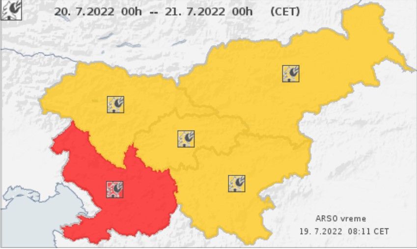 V devetnajstih istrskih, kraških in primorskih občinah je Uprava za zaščito in reševanje razglasila veliko požarno ogroženost naravnega okolja. Gre za občine Ankaran, Izola, Koper, Piran, Hrpelje-Kozina, Divača, Sežana, Komen, Postojna, Ilirska Bistrica, Pivka, Nova Gorica, Kanal, Brda, Šempeter-Vrtojba, Miren-Kostanjevica, Renče-Vogrsko, Ajdovščina, Vipava.