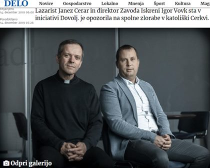 "Notranji mir je prvo, kar človek občuti ob srečanju z lazaristom misijonarjem Janezom Cerarjem. Igor Vovk iz Zavoda Iskreni je njegov nasprotni pol, človek akcije, pripravljen na ofenzivo vselej, ko je treba podpreti »pogumne in načelne ljudi, kot je Janez,« novinarka zapiše v predstavitvenem prispevku na spletni strani Dela. V članku "Če je gniloba v Cerkvi, jo je treba očistiti," si lahko pogledate tudi predstavitveni video.