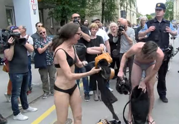 Igralec Primož Bezjak se je slekel do spodnjega perila in na vrata ministrstva prilepil svoji obleko kot rekvizit za ustvarjanje v gledališču. S tem dejanjem je Bezjak pritegnil pozornost policistov, ki so ga legitimirali, ob vsesplošnem negodovanju ostalih protestnikov pa so se tudi kmalu umaknili. V podporo Bezjaku se je nato, ob vpitju "Policija represija" slekla še igralka Katarina Stegnar.
