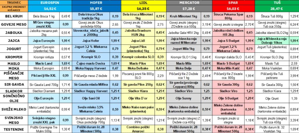 Kilogram kruha za 19 centov, paket govejih zrezkov za evro, paket sira za 62 centov, svinjski zrezki – malo čez evro … Vse to niso le pobožne želje vsakega slovenskega potrošnika, ampak glede na rezultate zadnjega popisa živil realnost pri praktično vseh večjih trgovcih. Le da gre za akcije, ki niso bile nikjer oglaševane in so jih morda ujeli le najbolj redni obiskovalci trgovin ter najavljeni vladni popisovalci, ki vsakič znova zabeležijo še cenejša živila. Vrednost osnovne košarice 15 živil je tako pri najcenejšem trgovcu znašala le slabih 16 evrov, razširjena košarica 28 živil pa je stala 28,70 evra.