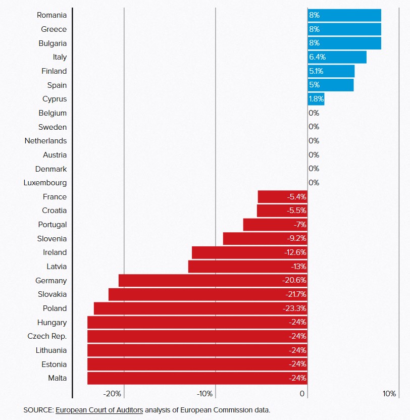 Evropska komisija za naslednjo finančno perspektivo predvideva 10% znižanje sredstev, namenjenih koheziji, ki pa ne bo prizadelo vseh držav enako. Največje zmanjšanje in sicer za skoraj četrtino bi doletelo Malto, Češko, Madžarsko, Litvo in Estonijo. Poljsko, Slovaško in Nemčijo bi doletelo okrog 20 % zmanjšanje kohezijskih sredstev, Slovenijo pa 9 %. Nekatere članice bi sicer tudi pridobile. Romunija, Grčija in Bolgarija bi prejele 8% več sredstev, Italija, Finska in Španija pa okoli 5%.