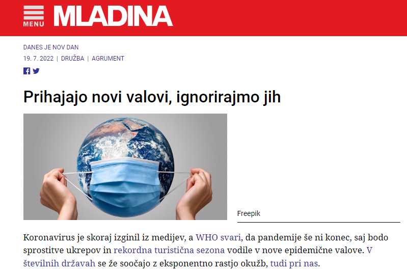 19. julija je tako Mladina objavila članek z naslovom, ki nas je zares osupnil. Pisalo je: “Prihajajo novi valovi, ignorirajmo jih.” Čeprav bi sredi vročega poletja kdo pomislil drugače, se naslov nanaša na covid epidemijo.