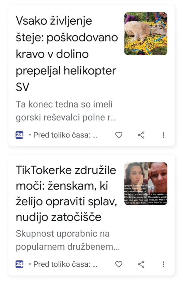 "Vsako življenje šteje," so z masnimi črkami napisali na portalu 24ur.com, in sporočili veselo novico, da so v slovenskih gorah poškodovano kravo gorski reševalci rešili tako, da jo je v dolino prepeljal helikopter Slovenske vojske.