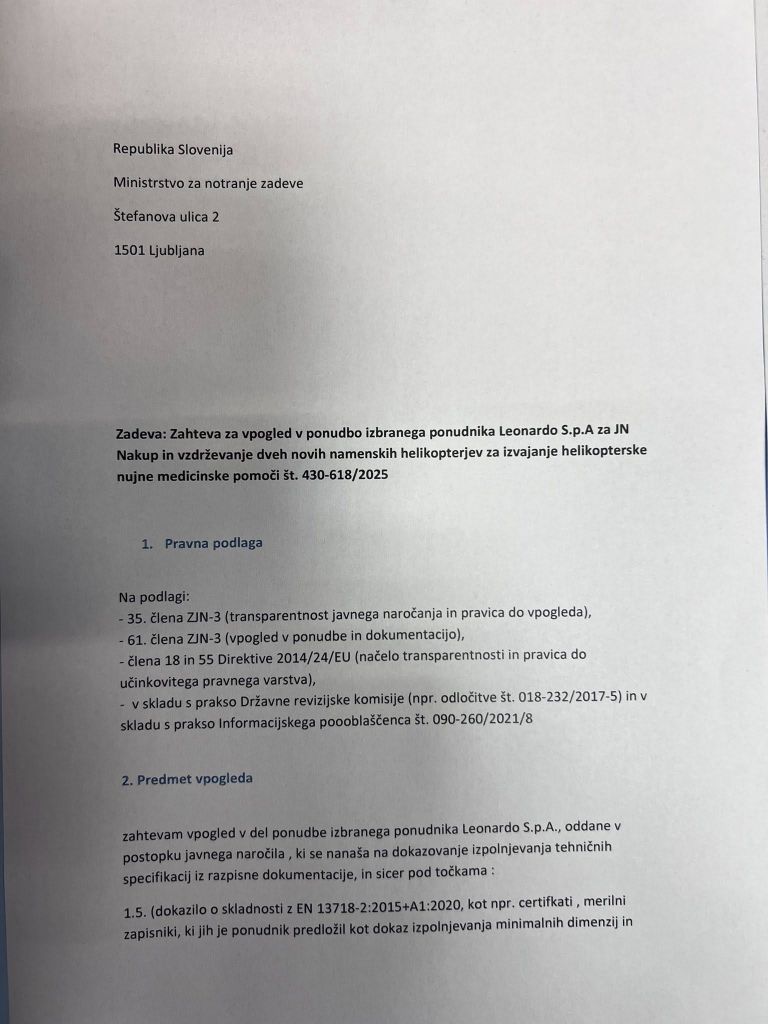 Glavna govornica na briefingu je bila sicer po naših informacijah Helga Dobrin, državna sekretarka na MNZ, ki so jo osrednji mediji večinoma identično povzeli: helikopterja naj bi v Slovenijo prispela oktobra 2027, oziroma februarja 2028, zavrnila pa je vse očitke o spornem razpisu in zatrjevala, da je bila stroka vključena pri obeh javnih naročilih in pri pripravi razpisne dokumentacije. Dejala je, da so strokovno razpisno komisijo sestavljali tako predstavniki ministrstva za zdravje, ministrstva za notranje zadeve in policije, da je MNZ na koncu odločitev o izbiri ponudnika sprejelo zakonito in transparentno, pogodbe za nakup pa naj bi podpisali v prihodnjih dveh tednih.