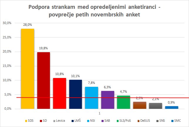 Zadnji novembrski anketi z različnimi rezultati. Takšno je povprečje petih novembrskih raziskav