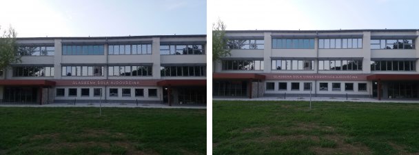 Levo je fotografija napisa imena glasbenim šole brez Vinka Vodopivca, kot je to sedaj, desno pa fotomontaža z vnešenim celotnim imenom šole, ki dokazuje, da sklicevanje na prostorsko stisko ne zdrži.