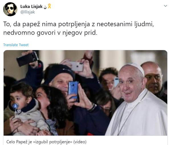 Frančišek ni moj papež, vendar kljub temu ocenjujejem, da je njegova reakcija pretirana, neumestna in za tako svetega mmoža sramotna.