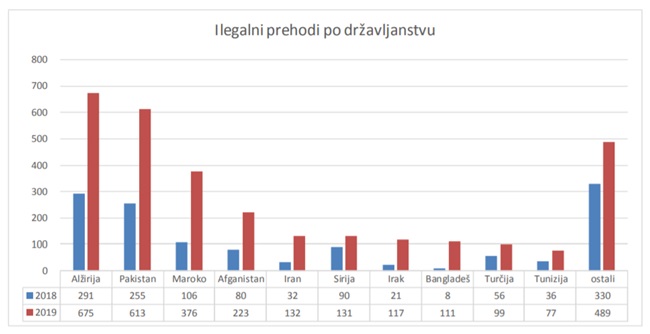 Letos trikrat več nezakonitih prehodov meje kot lani Medtem ko so policisti v prvih štirih mesecih lani obravnavali 1305 ilegalnih prehodov, so jih v enakem obdobju letos že 3043. Struktura ilegalnih migrantov po državljanstvu se spreminja, opazno je predvsem povečanje števila državljanov Alžirije, Pakistana in Maroka.